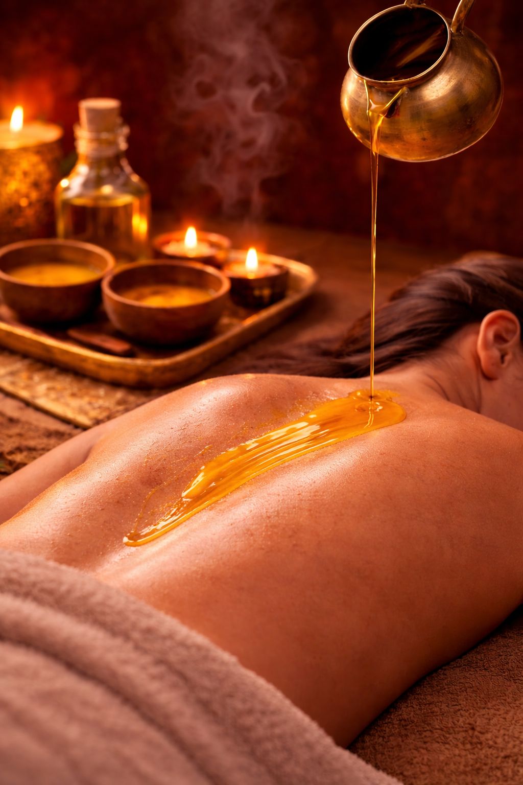 Traditionell wird die Massage mit warmem Sesamöl durchgeführt, das im Ayurveda für seine wärmenden, nährenden und entgiftungsunterstützenden Eigenschaften geschätzt wird. Das Öl pflegt die Haut intensiv, fördert die Durchblutung und unterstützt den Körper bei Entgiftungs- und Ausleitungsprozessen.