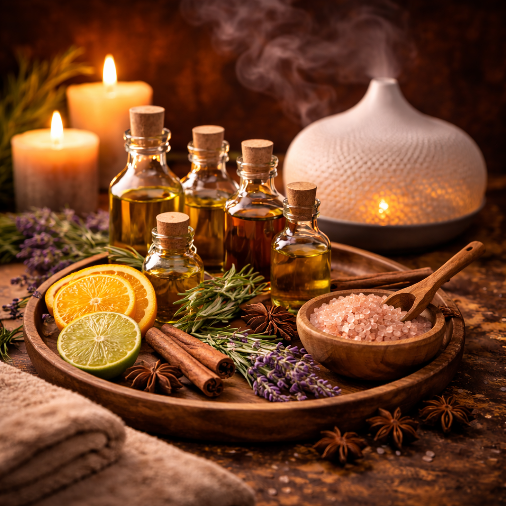 Zu Beginn wählen Sie Ihren persönlichen Aromaduft, dessen ätherische Öle während der Massage ihre beruhigende und ausgleichende Wirkung entfalten.